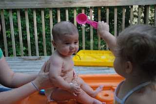 Pouring water on baby brother...what fun ;)
